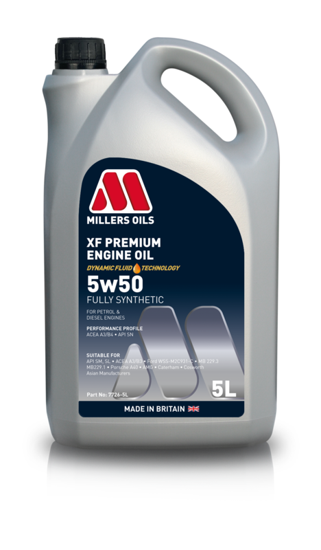 Prémiový motorový olej zostavený s použitím najnovších technológií pre OEM aplikácie vyžadujúce olej typu 5W50. Najmä odporúčaný pre agregáty Mercedes Benz AMG, Porsche, Caterham, Ford (vrátane Mustang) a ďalšie výkonné motory zaťažované športové jazdou. Využíva najnovšie Millers Oils Dynamic Fluid Technology (DFT).